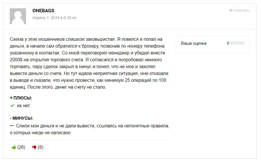 Реальные положительные отзывы о лохотроне мы не обнаружили.