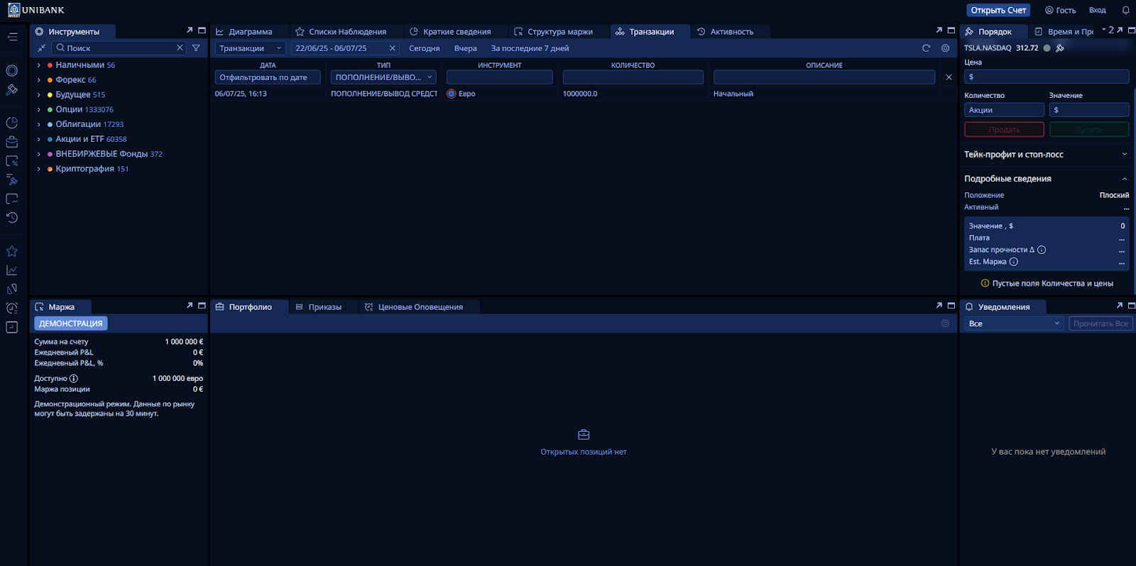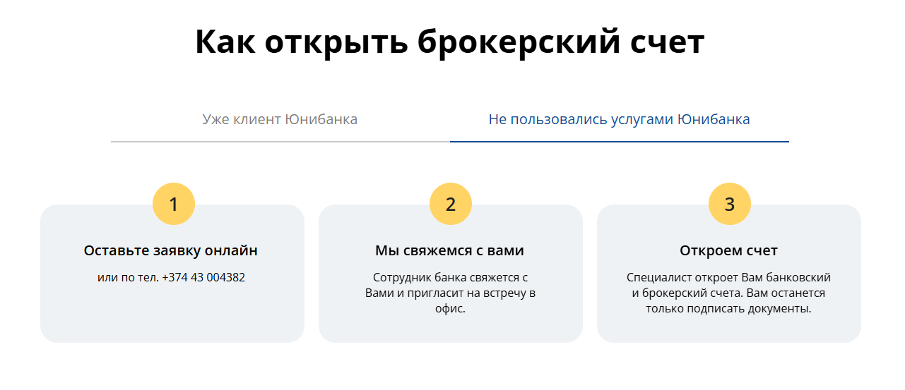 Открытие счёта «Юнибанк Инвест»