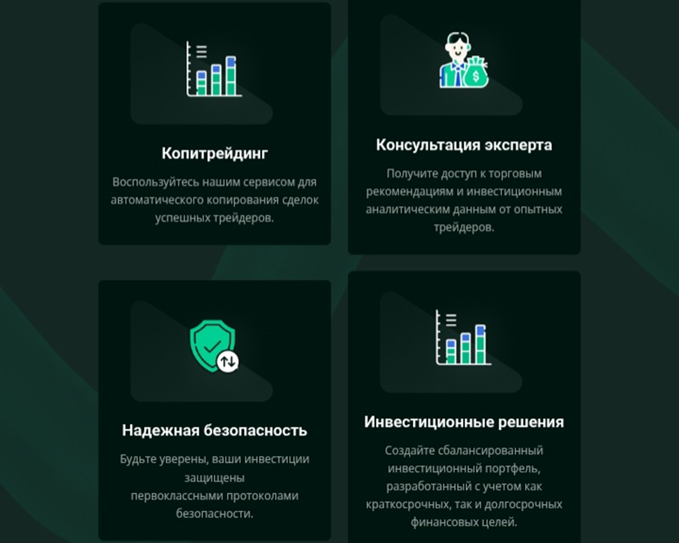 В компании «Юзебл Капитал» действует несколько счетов для торговли. В каждом предлагаются свои условия и функции. При выборе базового тарифа придется инвестировать от 300 долларов. В этом случае доступно обучение. Если интересует стандартный тариф, то вкладываться нужно от 1000 долларов. Тогда гарантируется помощь личного наставника. А при выборе премиум варианта вкладывают от 5000 долларов. Предоставляется поддержка куратора и открывается доступ к криптовалютной бирже. Еще через Terminal Usablecapital Net открывается доступ к копитрейдингу. Также на сайте указаны личные обучающие программы и аналитический сервис.