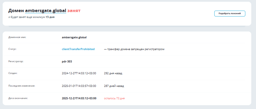 В рамках ресурса используются и другие доменные имена, например user ambersgate de world, wt ambersgate net и прочие, что может запутать клиента и создает негативное впечатление.