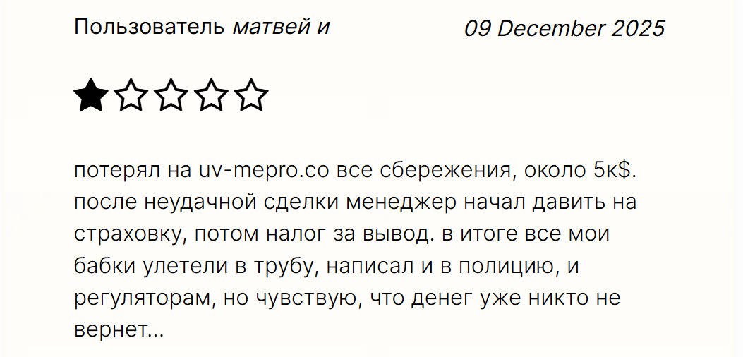 - Отзывы об Uvmepro негативные, так что клиенты лишь подтверждают подозрения на мошенничество.