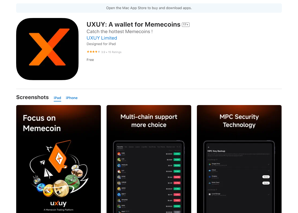 Также уже работает Uxuy A wallet for Memecoins – полноценное приложение для iOS и Android. Ссылку на скачивание можно найти на официальном сайте, либо через поиск на маркетплейсах. Уже сейчас им активно пользуются и оставляют свои оценки.