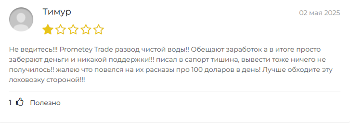 Оставьте отзыв на Prometey и Вадима Сенсея Дмитренко, если сотрудничали с трейдером или располагаете информацией о нем.