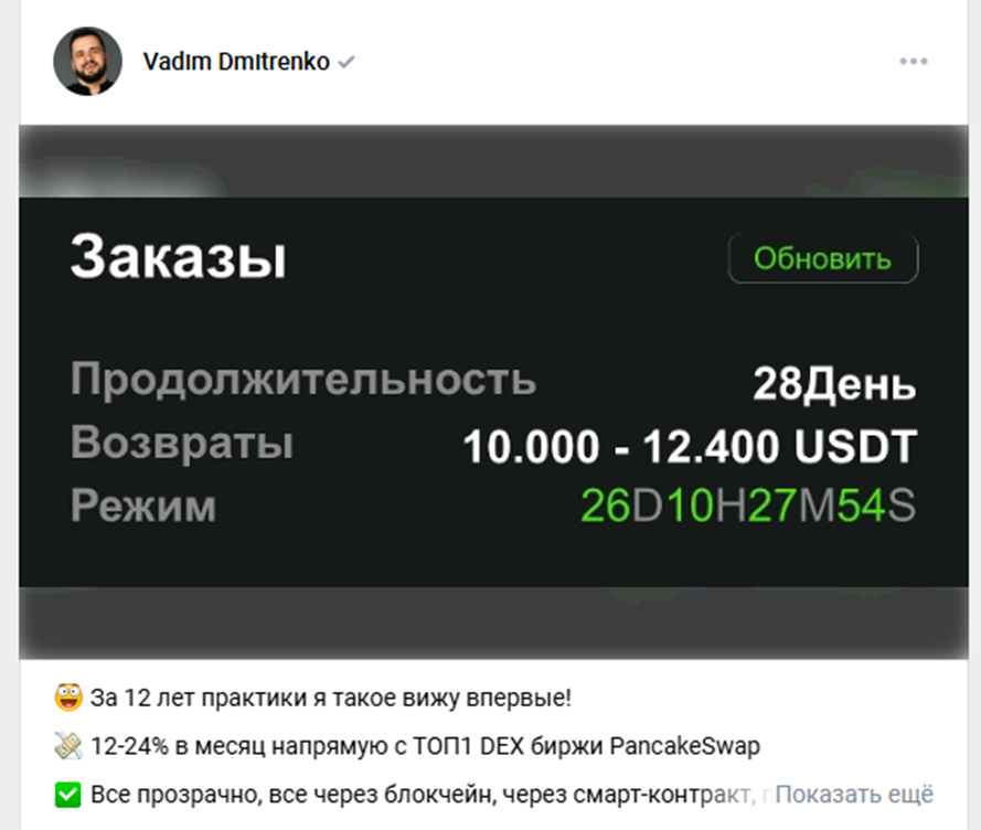 На обучение у Вадима Дмитренко и личное сотрудничество с ним в сети отзывов нет, хоть он и рассказывал о запуске инвестиционного клуба с тысячами последователей.