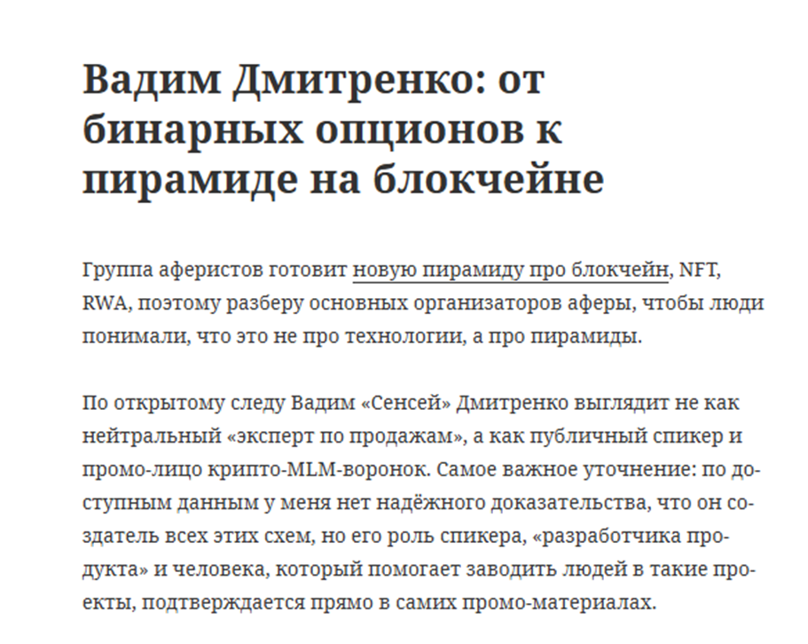 На обзорных сайтах Дмитренко фигурирует как мошенник и эксперты не советуют ему доверять.