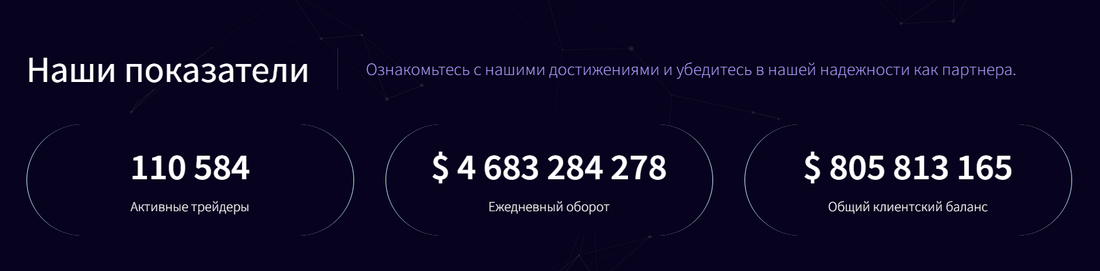 По приведённой статистике, на платформе зарегистрированы 100+ тысяч пользователей, которые ежедневно переводят средства на сумму 4+ миллиарда долларов. У брокера якобы есть награды IAFT Awards, Global Brands Magazine и другие. Однако это мало похоже на правду, так как сайт существует всего 2 месяца.