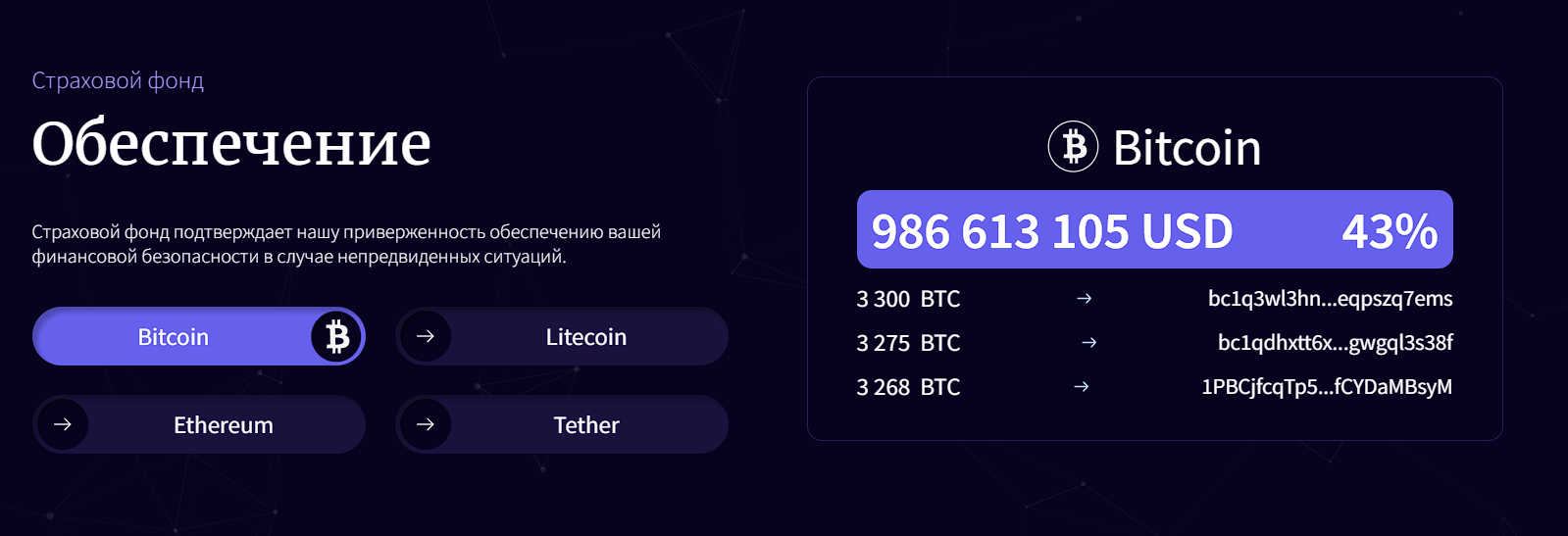 Для клиентов на тарифе VIP обещают доступ к страховому фонду. Например, для Биткоина указан его размер – 986 миллионов долларов. Однако нет подтверждения, что эти суммы реально существуют.