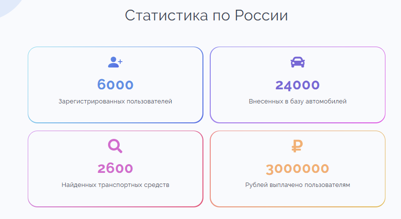Чтобы подтвердить возможности ресурса, на сайте VCarMoney размещена впечатляющая статистика: на январь 2026 года зарегистрировано более 6 000 участников, а в базу внесено 24 000 авто. Из них найдено только 2 600, за которые выплачено ₽3,000,000.