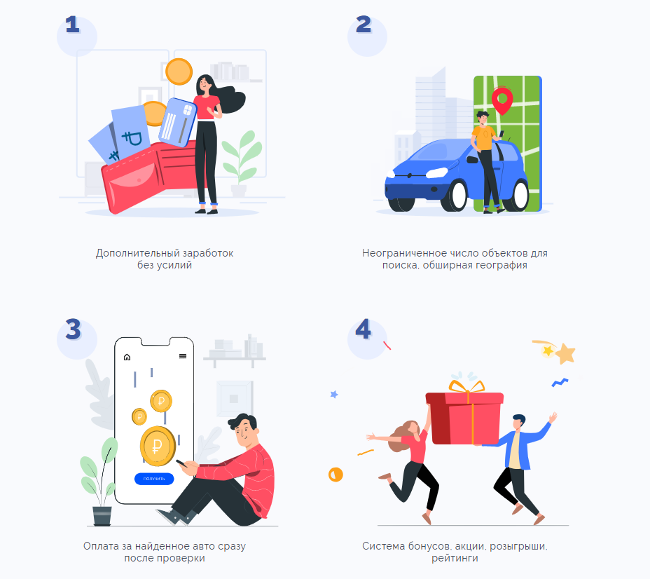 Суть работы на VCarMoney заключается в фотографировании автомобилей, которые отмечены на карте. Чтобы получить реальные деньги, пользователи должны пройти всего три шага: