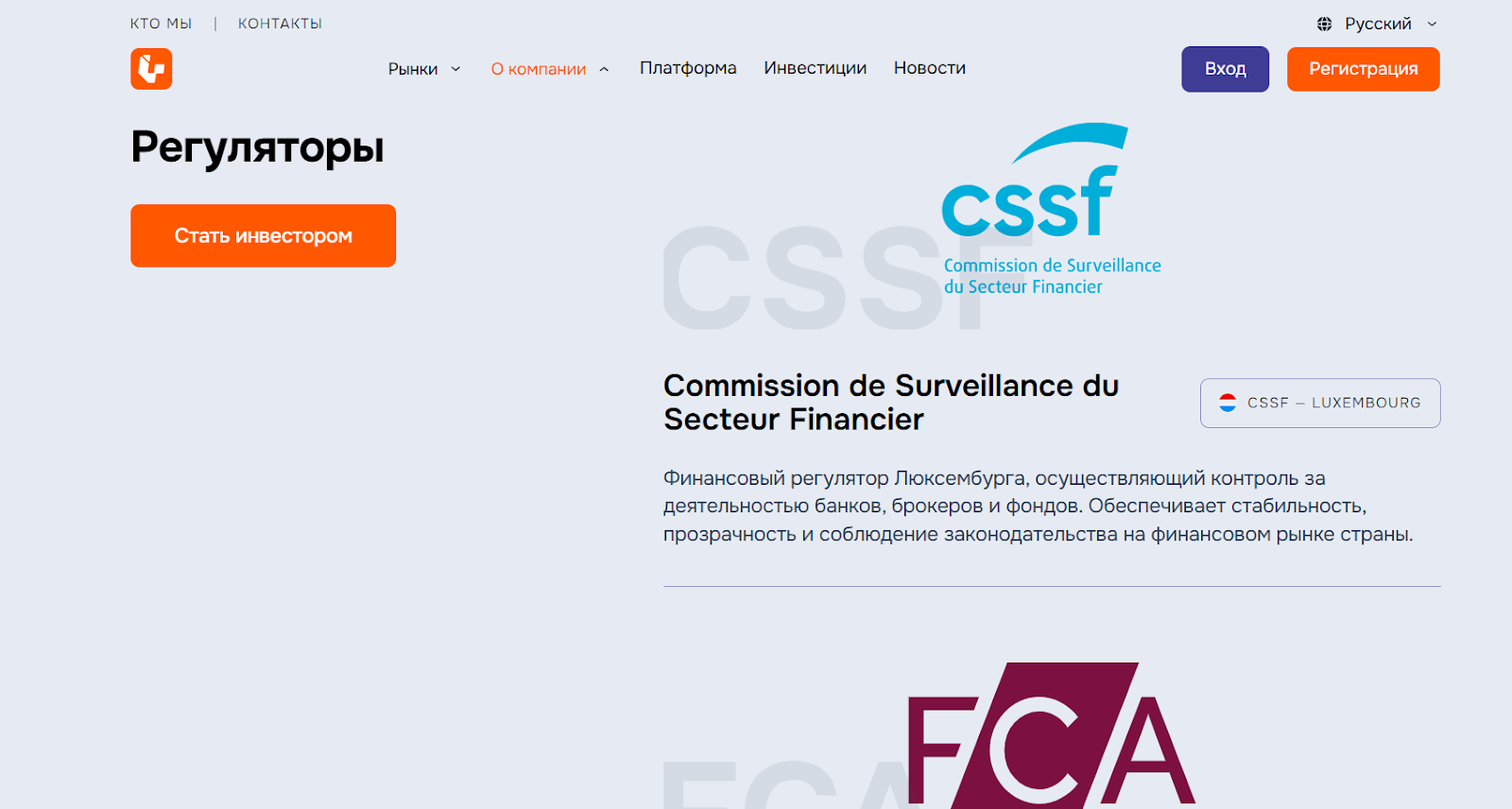 На сайте размещены CSSF, FCA, DFSA и VFSC как регуляторы, под которыми компания якобы работает. В действительности ни один международный регулятор не подтверждает лицензии брокера.
