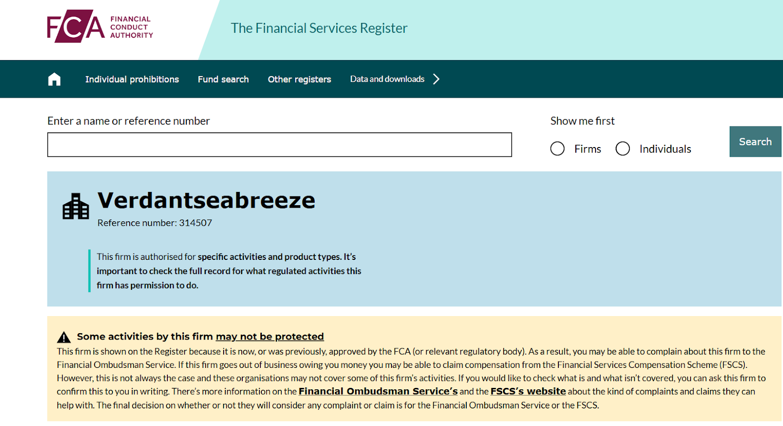 Например, в реестре FCA есть историческая карточка компании с номером 314507, но она не относится к данному брокеру, не имеет отношения к их доменам и ранее занималась другими видами деятельности.
