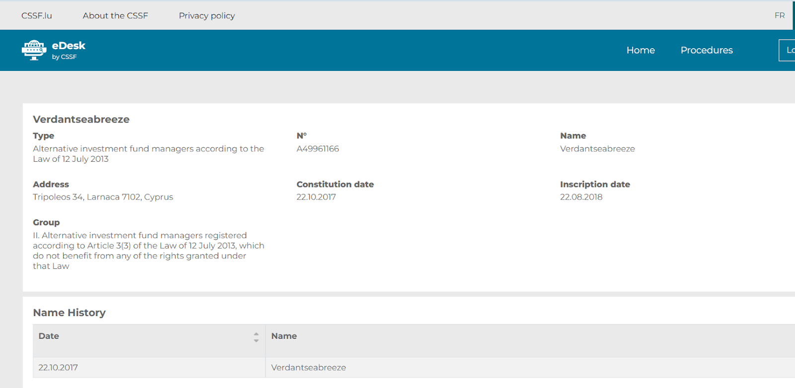 CSSF-номер A49961166 относится к категории “Alternative investment fund managers”, однако эта категория не дает права на брокерскую деятельность, торговлю CFD, работу с плечом или обслуживание розничных трейдеров.