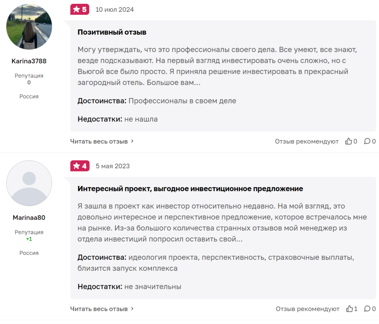 Параллельно встречаются и положительных отзывы о Вьюга, в которых клиенты отмечают профессионализм работников компании. Они заявляют, что представители компании помогают в вопросах инвестирования, а само вложение выглядит перспективно.