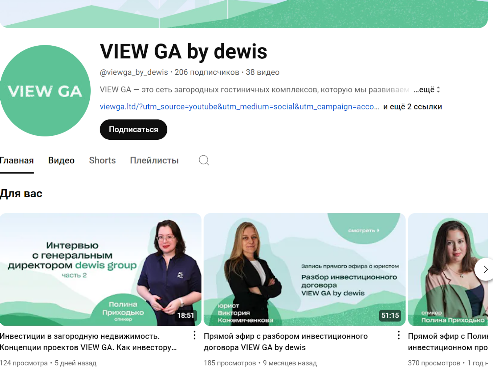 • Ютуб-канал VIEW GA by dewis. Данное сообщество имеет около 200 подписчиков, а количество роликов не превышает 40. Новые видео добавляются с периодичностью раз в 5-7 дней и посвящены инвестированию в загородную недвижимость.
