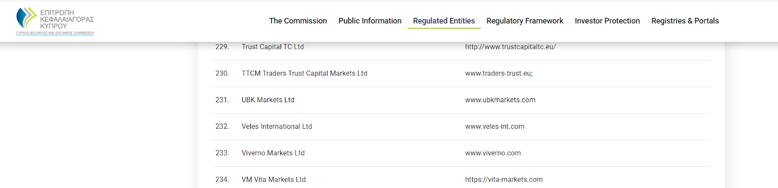 Второе утверждение о Vita Markets подтверждается самим CYSEC — домен находится в разделе одобренных и признанных валидными.