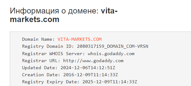 Вероятно это связано тем, что Vita Markets com готовится к закрытию.