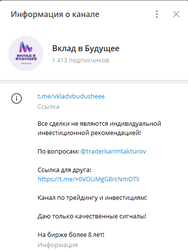 Канал «Вклад в будущее» в ТГ является проектом анонимного инвестора Карима Тактурова. В обзоре мы проверим его деятельность на скам, проанализируем данные о нем в сети.