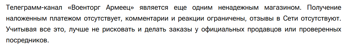 Обзор магазина в Телеграмм «Военторг Армеец 🔞»: отзывы о тг-канале, проверка надежности проекта, изучение ассортимента и анализ деятельности VoenHelper