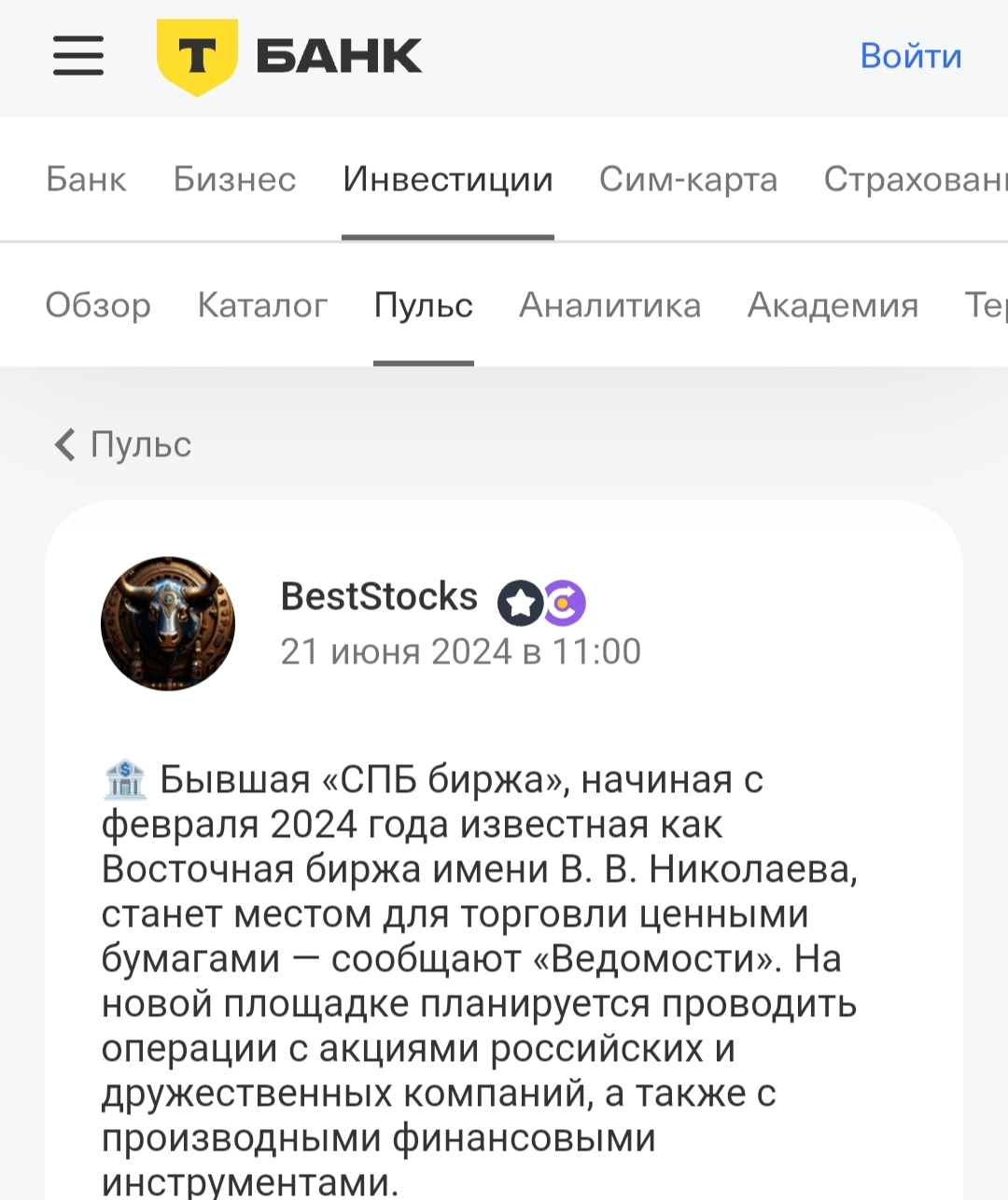 P АО «Восточная биржа им. В В Николаева» — это бывшая «Санкт-Петербургская биржа». В 2024 году она сменила название и переехала во Владивосток. В этом обзоре мы попробуем понять, чем сейчас занимается площадка. Узнаем, почему о ней мало отзывов и стоит ли доверять её новым проектам. Расскажем про планы по торговле акциями азиатских компаний, проблемы с сайтом и подключённых к площадке брокеров.