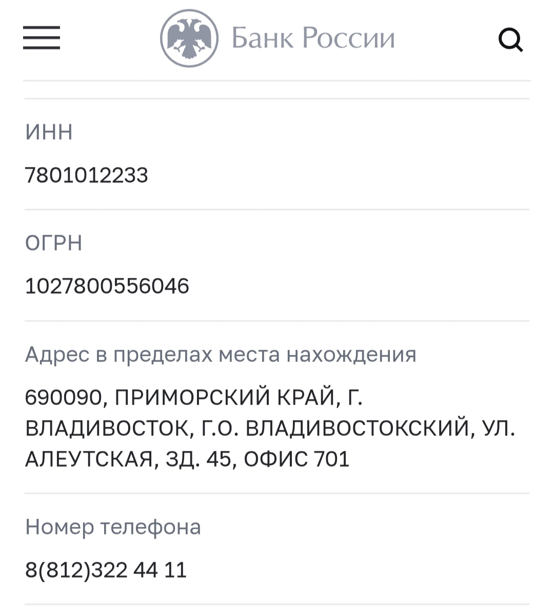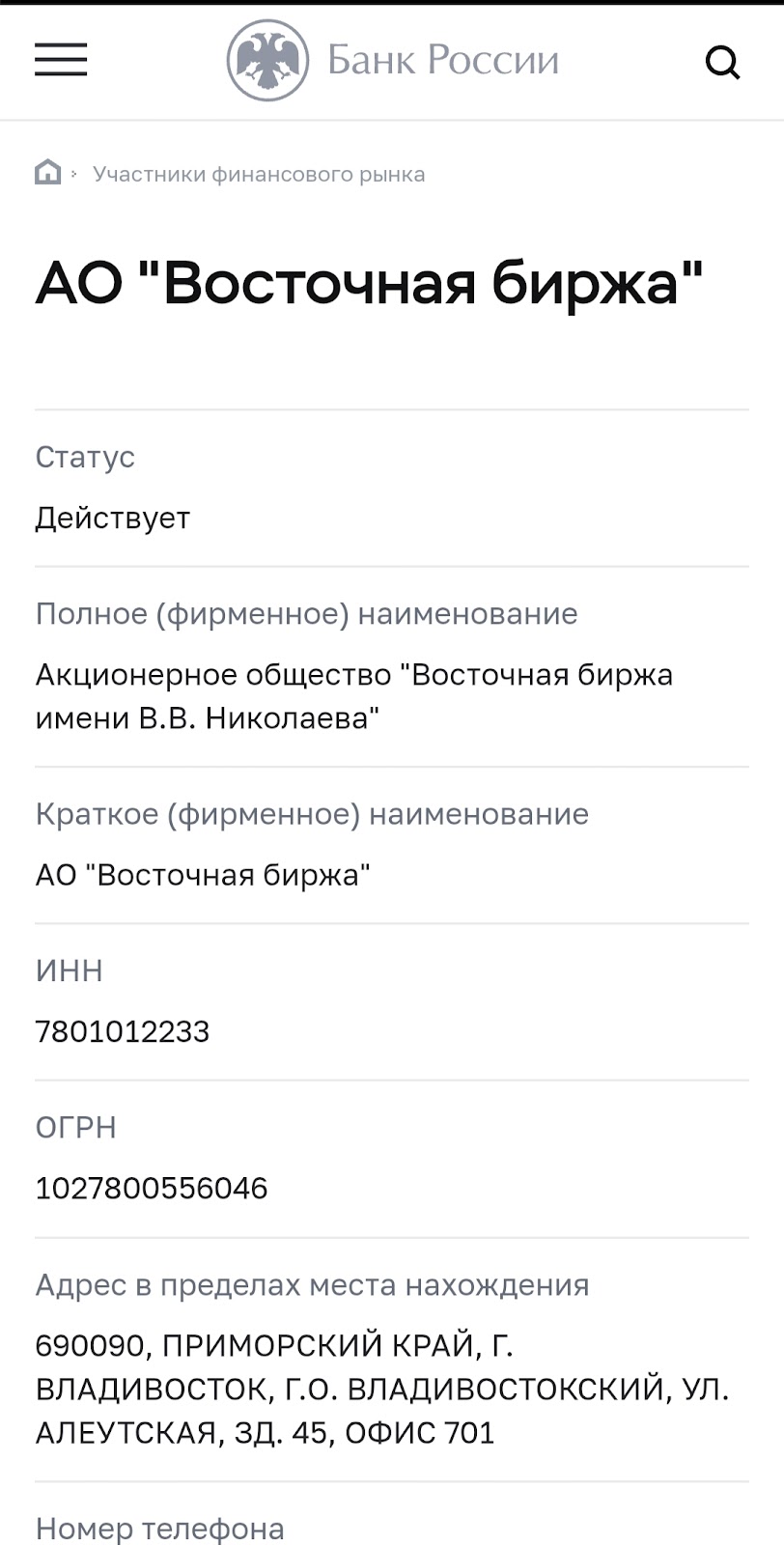 Заметим, что юридический адрес биржи указан как здание на улице Алеутской во Владивостоке, но при этом телефонный номер остался питерский. Это заставляет задуматься о том, легко ли дозвониться в офис из других регионов и где вообще сконцентрирован персонал.