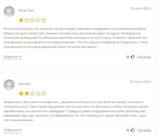 - отзывы о Vouoouc говорят о том, что пользователи не доверяют этой бирже.