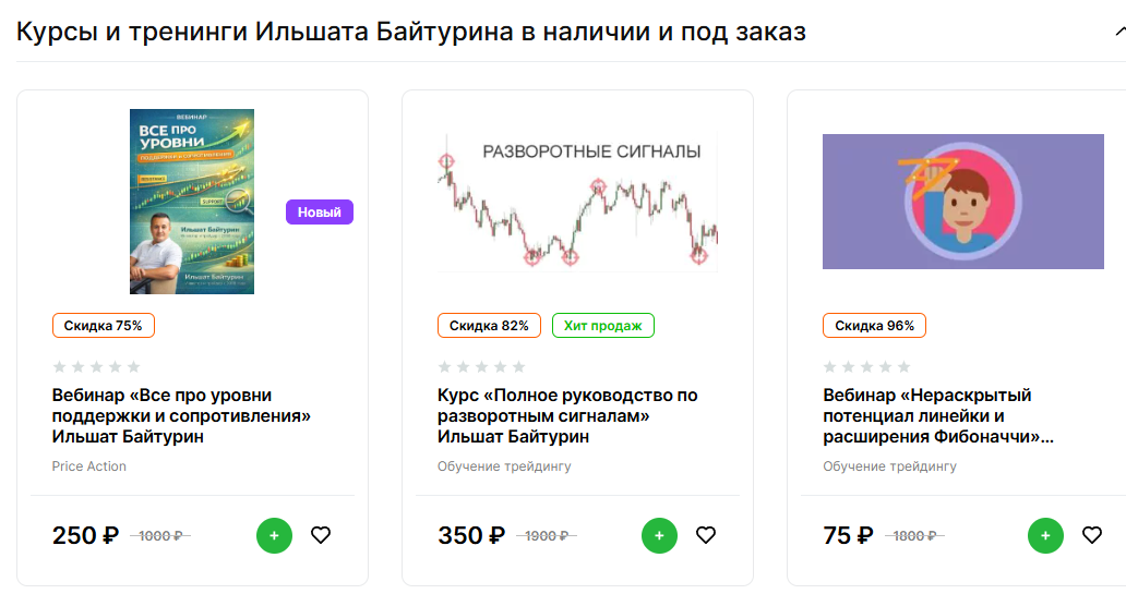 На сторонних платформах также можно найти несколько уже проведенных курсов и вебинаров, посвященных Фибоначчи и разворотным сигналам.