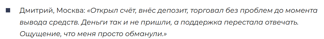 - Негативные отзывы. Пользователи жалуются на плохую работу поддержки и невозможность вывода средств;