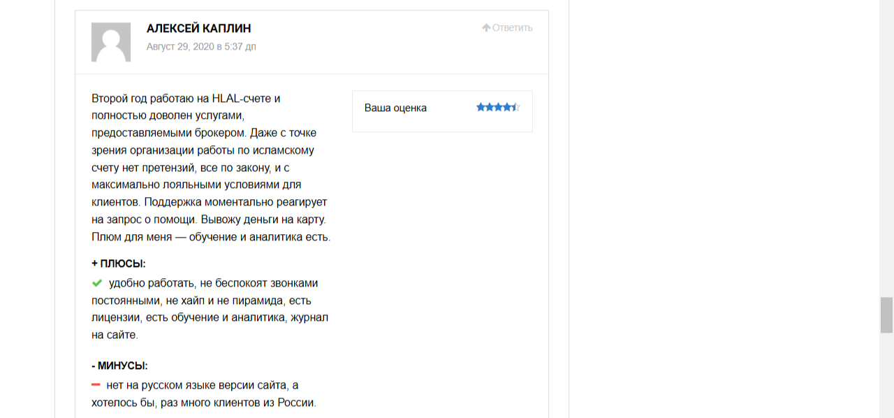 Своим главным преимуществом компания называет приверженность шариату. Брокер не нарушает мусульманские законы и тщательно следит за деятельностью каждого сотрудника.