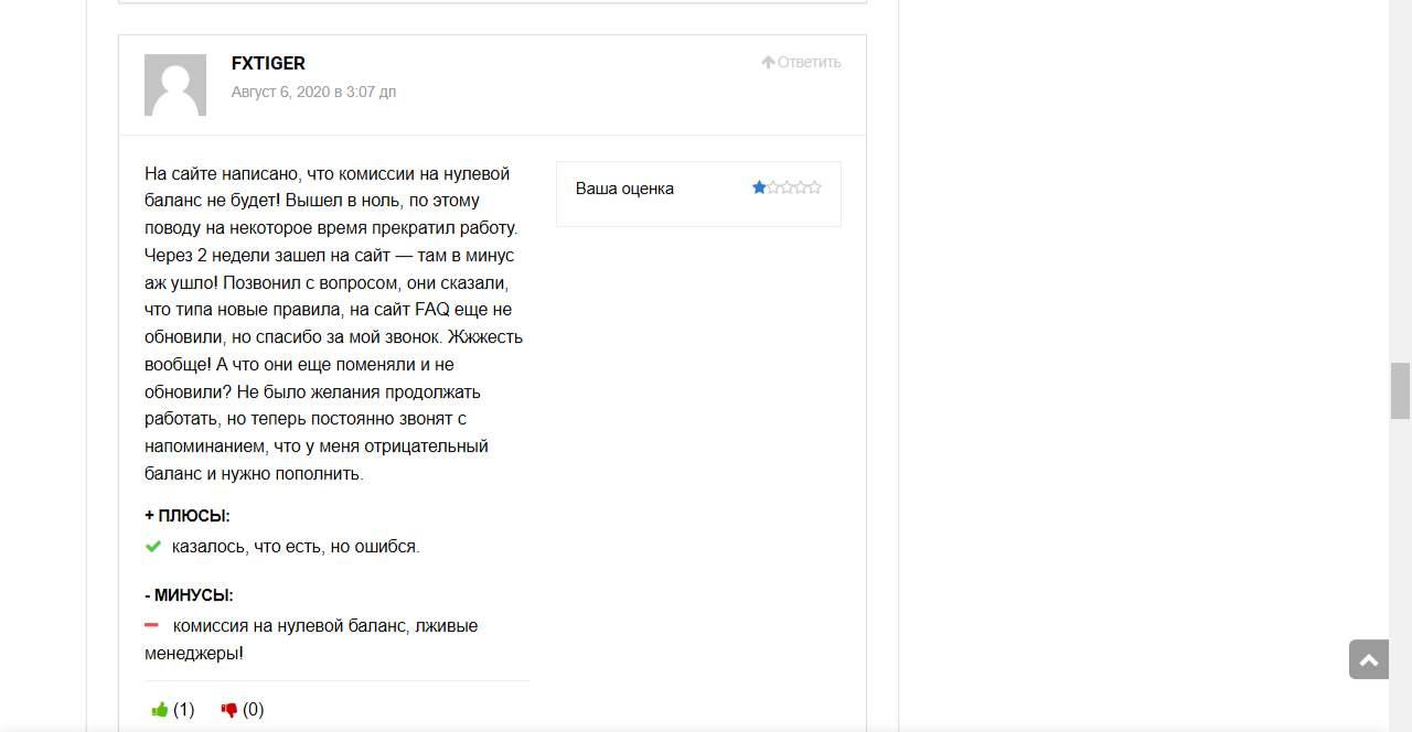 Зато отрицательные комментарии отличаются большим разнообразием. Есть жалобы, что комиссия начисляется даже на нулевой депозит, вопреки обещаниям брокера.
