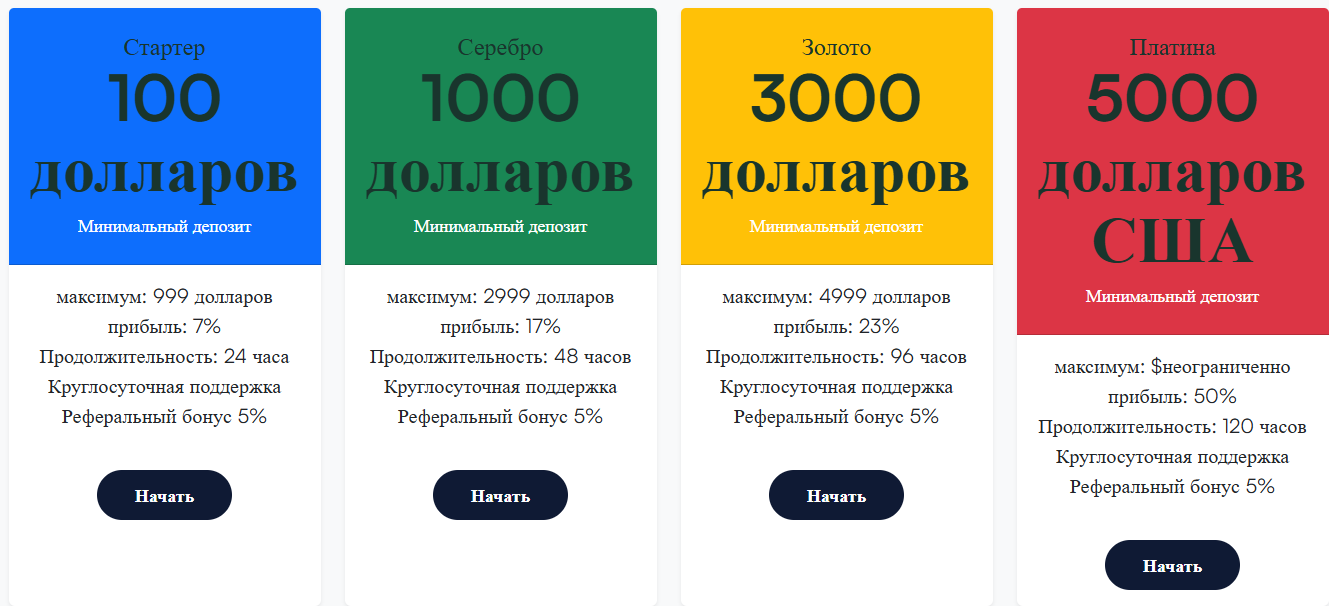 • Starter: при внесении от $100 обещают 7% прибыли всего за 24 часа;