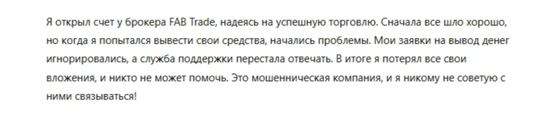 - Негативные отзывы клиентов о Ffabtrad.