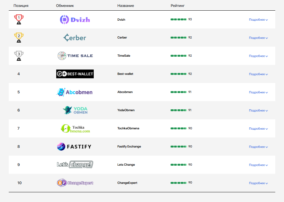 На сайте WellCrypto представлено 190 обменных пунктов с общей суммой резерва около $14 миллионов. Представлен топ лучших сервисов по мнению портала.