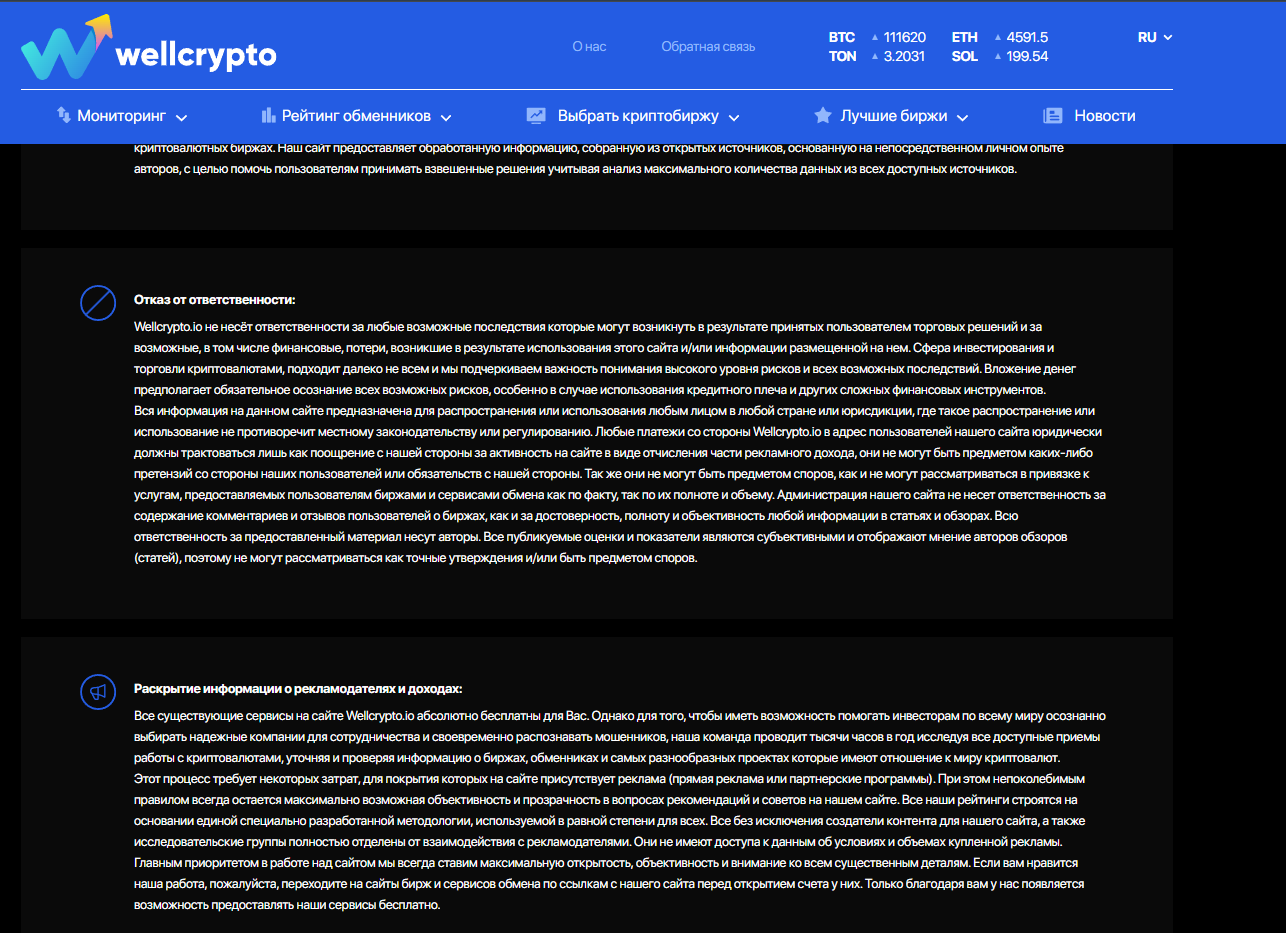 Общая информация о сайте WellCrypto io