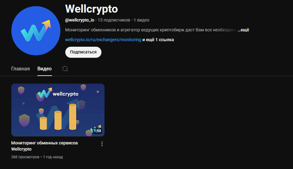 Администрация ведет канал на YouTube – @wellcrypto_io, но на него подписано всего 13 человек. За год вышло только одно видео о том, как работает сервис мониторинга.