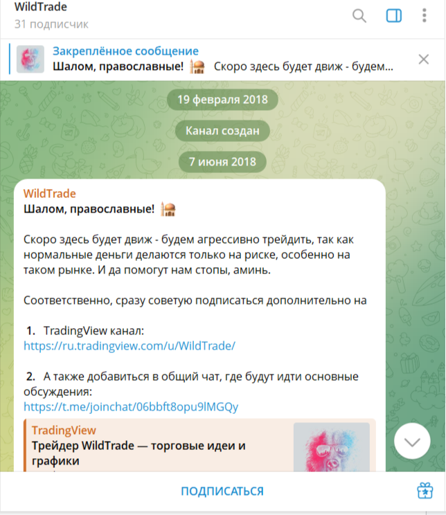 Админ ресурса предлагал подписчикам бесплатные инвестиционные сигналы для агрессивного трейдинга. Создатель телеграмм-биржи Wild Trade не призывал читателей канала покупать разовые финансовые рекомендации, не продавал платную подписку в приватный чат (хотя такой был).