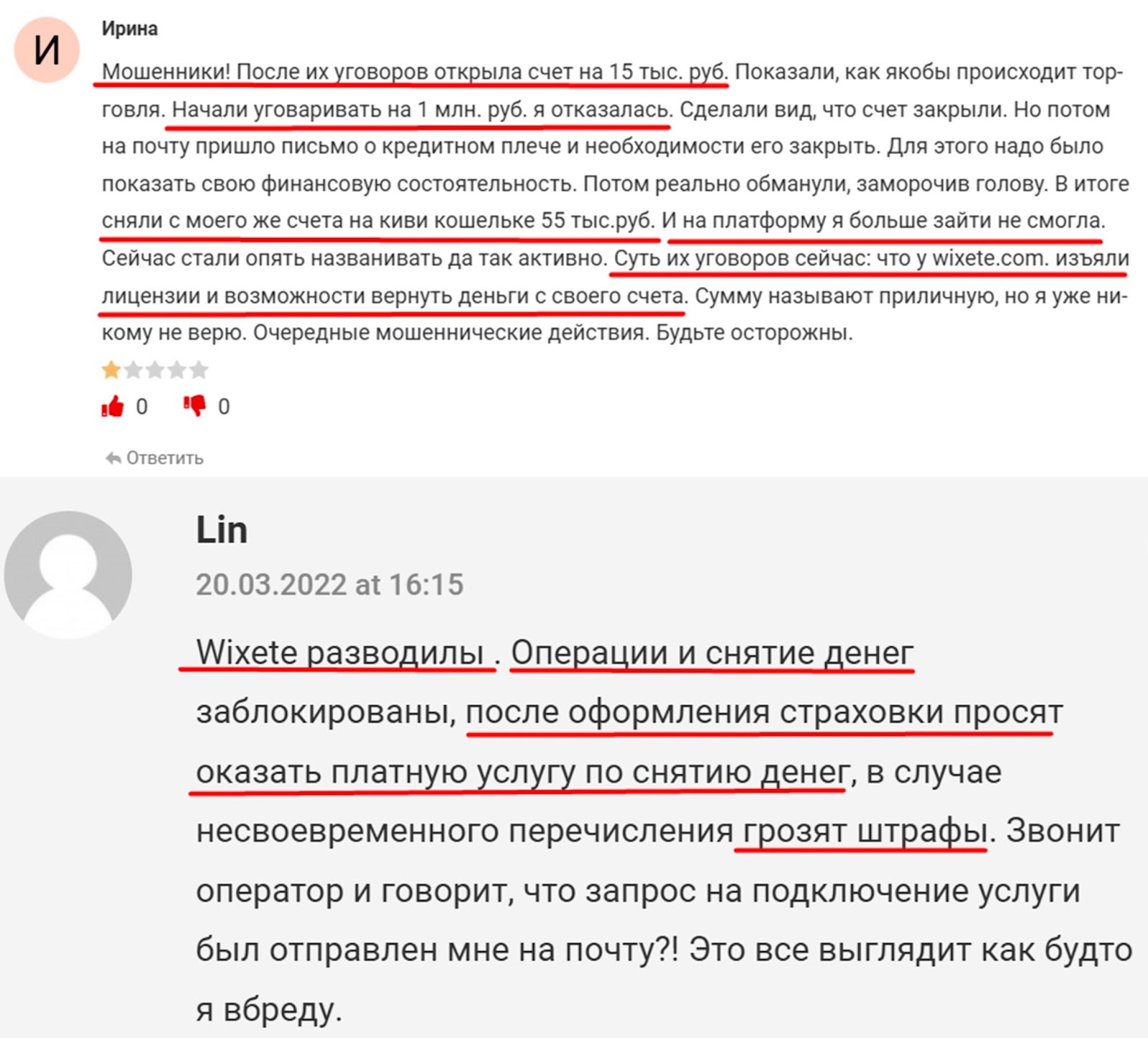 Дополнительно клиенты сообщают о блокировке аккаунта и неэффективности службы поддержки. Трейдерам обещали высокую доходность и быстрый вывод средств на кошелек, но условия сервиса wixete не были выполнены. Торговать и заработать деньги инвесторы не смогли.
