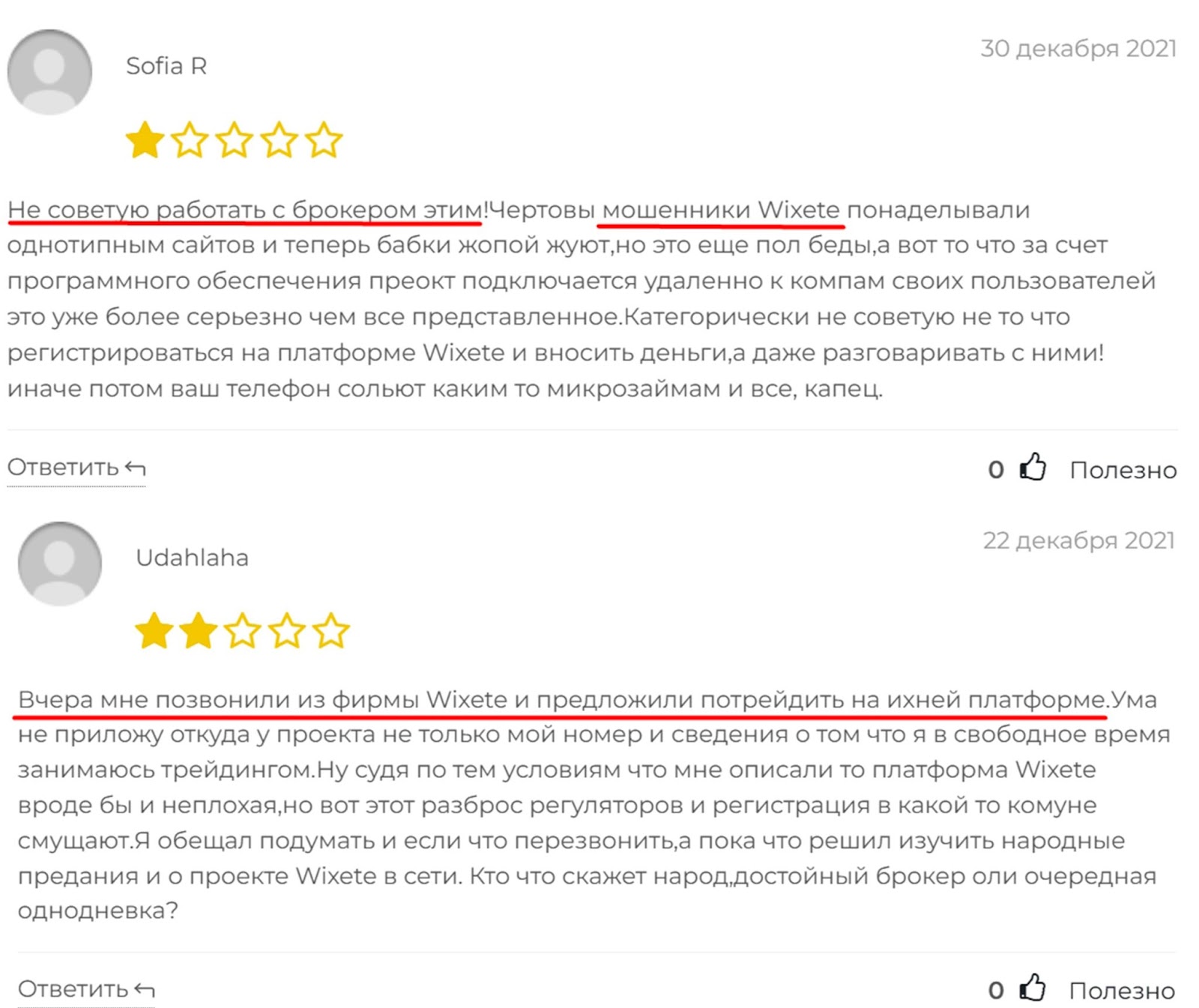 На веб-странице wixete com отсутствует блок с комментариями. За 3 года сотрудничества с брокером пользователи сообщают, что виксете это очередная компания мошенников. Клиенты указывают на клонированный сервис без надежного регулятора. Трейдеры не получили прибыль и потеряли часть депозита.