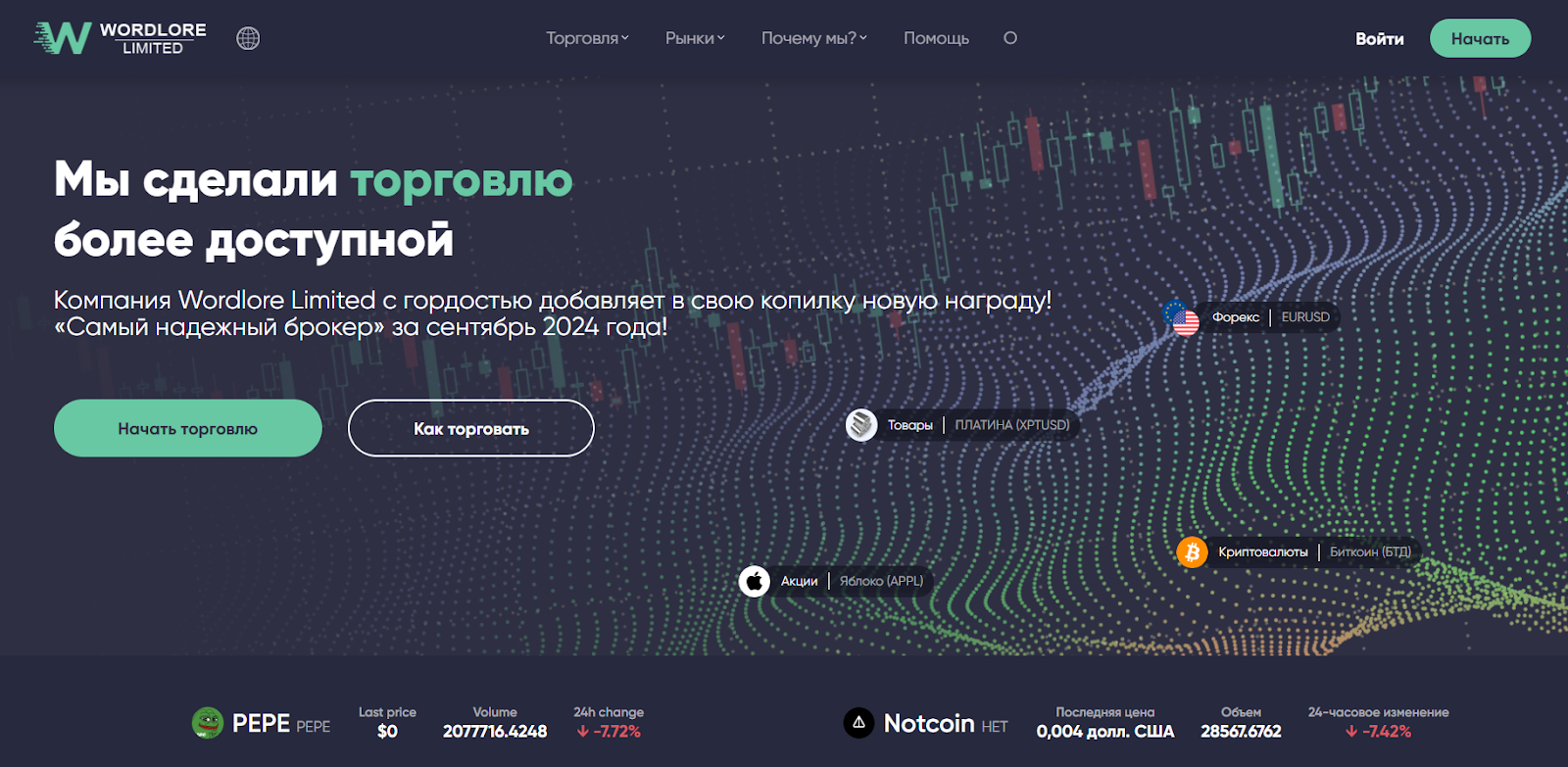 Платформа wordlorslimited com называет себя биржей мирового масштаба. Особое внимание компания уделяет тому, что в 2024 году получила очередную награду за качество предоставляемых услуг и звание лучшего брокера. Это не первая награда в копилке брокера, на сайте представлено несколько признаний от авторитетных обществ. Пользователям биржа обещает сразу несколько конкурентных преимуществ, что обязательно положительно отразится на их торговле. Чтобы узнать больше положительных качеств компании, разберем сведения о ней более подробно.