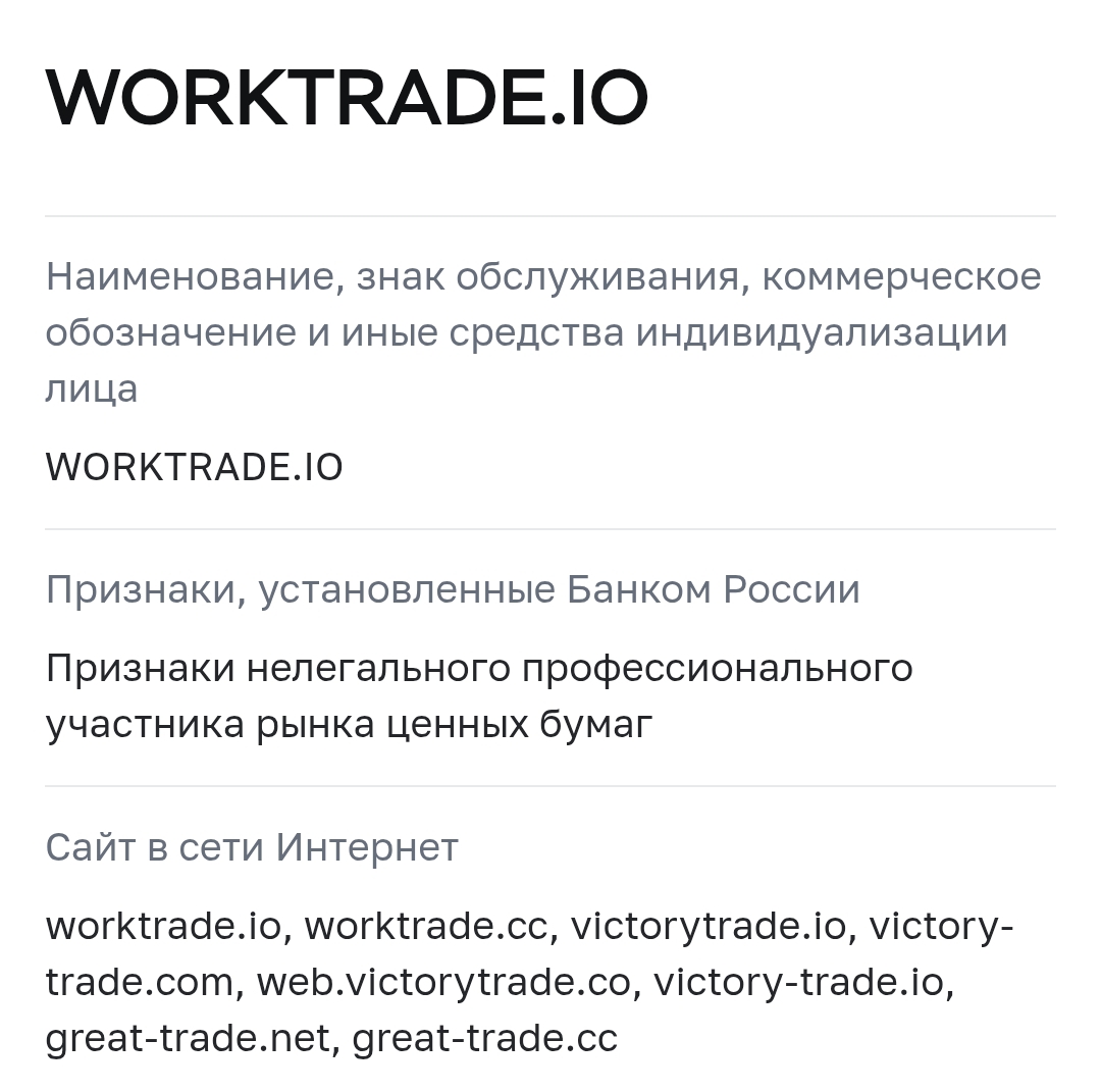 Сводная информация о брокере Work Trade
