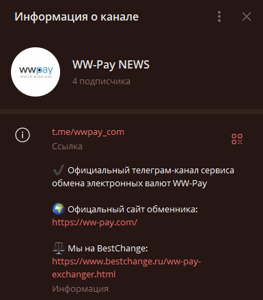 Нам удалось найти телеграмм-канал WW-pay News, но мы не можем утверждать, что он официальный. К слову, последний пост в этом канале датируется сентябрём 2021 года. Интересно то, что в этот же месяц этого же года он и был создан.