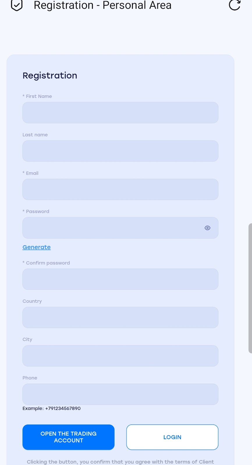 При попытке зайти на сайт появляется только форма регистрации, где нужно ввести личные данные, но нет информации о том, как проходит обслуживание, какие есть комиссии или спред.