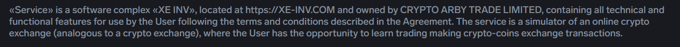 На сайте написано, что безопасность обеспечивается системой We Inv, но что это значит, непонятно, а на большинство страниц вообще без регистрации войти нельзя, в том числе и на «Пользовательское соглашение». В этом документе на Xe-Inv com указано много подозрительных пунктов, но особую обеспокоенность вызывает заявление, что биржа представляет собой симулятор торговли.