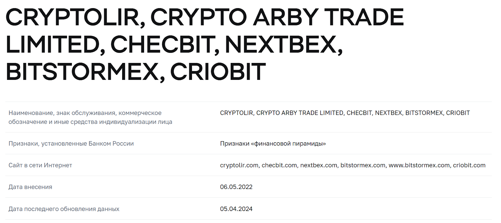 - Наличие связей с компанией, признанной регулятором финансовой пирамидой, серьезно подрывает доверие к проекту и указывает на возможные недобросовестные схемы работы.
