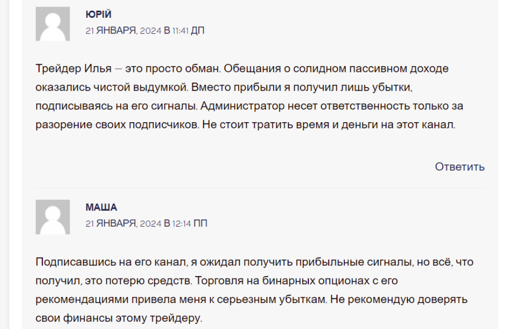 Сигналы с закрытой группы оказались убыточными, и из-за работы с трейдером многие только потеряли средства.