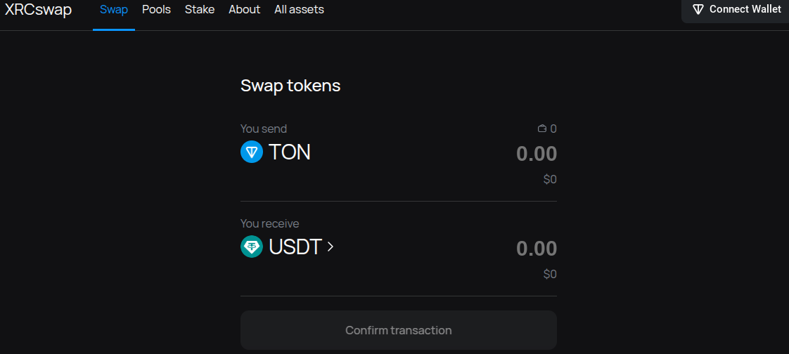 Xrcswap — децентрализованная биржа на базе блокчейна The Open Network. Покупать и продавать можно исключительно криптовалюты, стейблкоины на TON. По части поддержки кроссчейн конвертаций информации нет, но, вероятнее всего, DEX-обменник работает исключительно с токенами на TON. Через онлайн-сервис можно менять цифровые активы с минимальными комиссиями — об этом пишут представители сервиса на сайте. Есть ли реальные успешные сделки — вопрос, на который якобы профессиональные аналитики DEX-ресурса не отвечают.