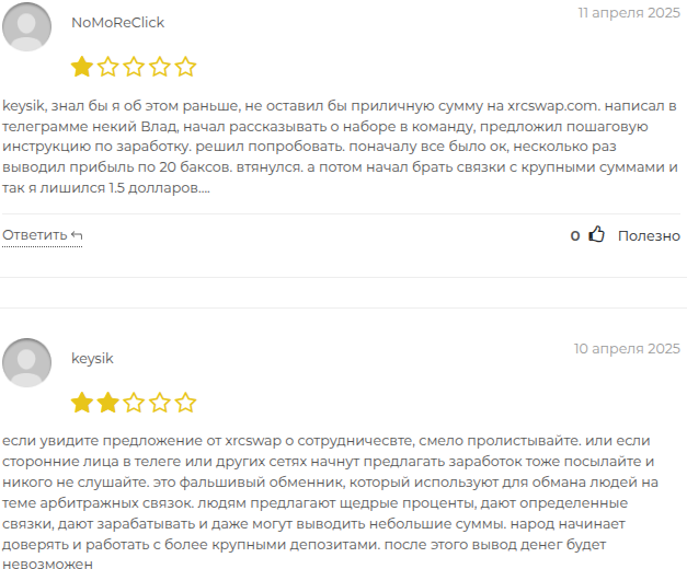 - В сети в основном отрицательные отзывы о бирже Xrcswap com от недовольных клиентов.