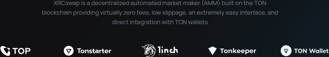 Среди конкурентных особенностей разработчики децентрализованной биржи Xrcswap com отмечают низкое проскальзывание, крайне простой интерфейс. Разработчики пишут про интеграцию с кошельками, которые тоже работают на базе блокчейна The Open Network. В частности команда проекта упоминает следующие хранилища криптовалют: