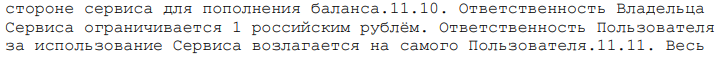 Пункт 11.10 ограничивает финансовую ответственность владельца Xtc-Work World перед пользователем суммой в ₽1.