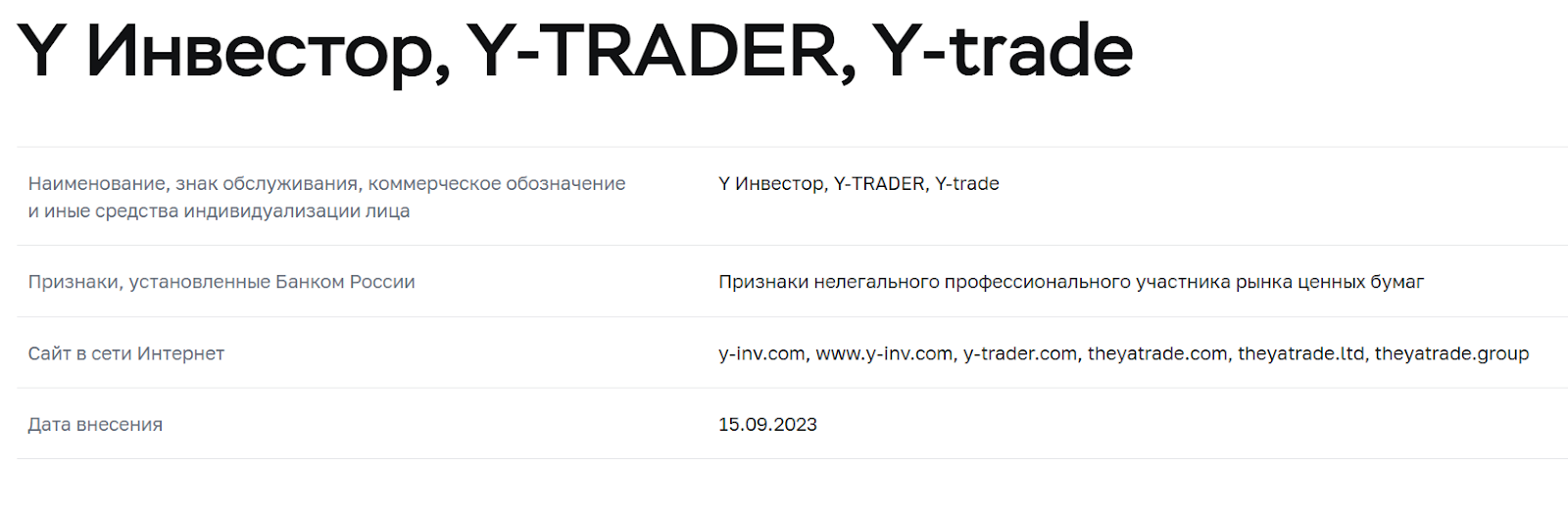 Y Inv com создали для кражи денег. Инвестиционная деятельность была прикрытием. Отсутствие лицензии означало нулевые гарантии возврата средств при любых проблемах. Чтобы заработать на финансовом рынке, лучше искать надежных брокеров, а не гнаться за преимуществами. Иначе вас ждет только убыток.