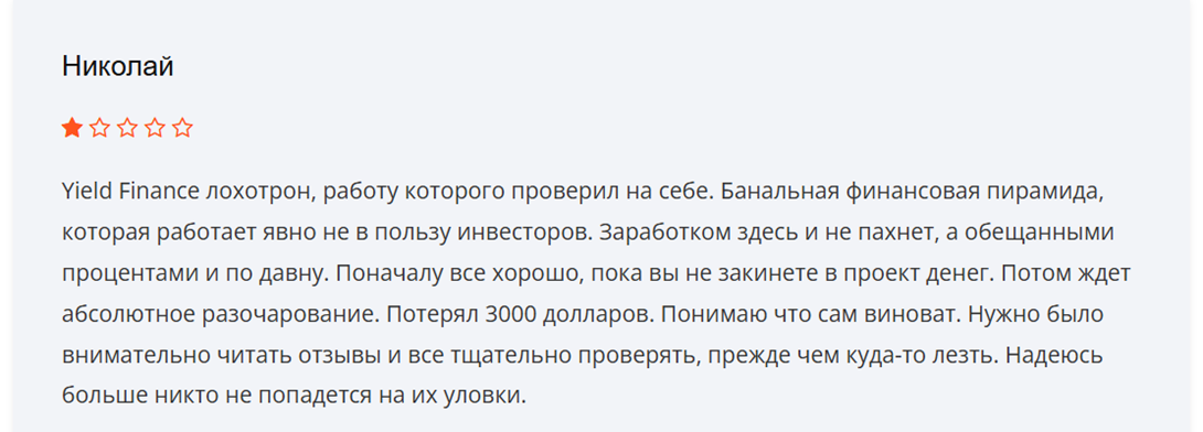 Отзывы о Yield finance